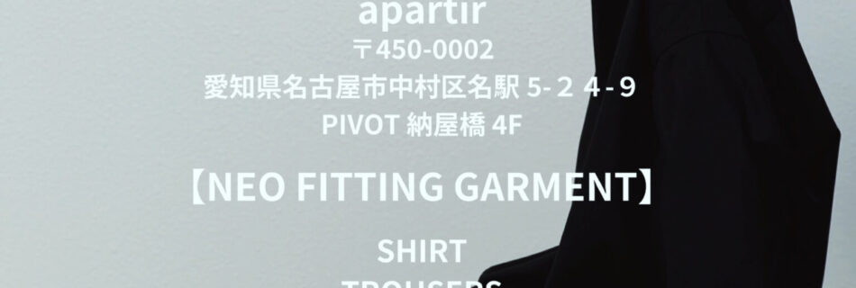 1月10日(土)– 1月16日(金) “NEO FITTING GARMENT” 開催のお知らせ 名古屋・納屋橋のパーソナルオーダー&セレクトショップ apartir(アパルティール) では、オーダーブランド 〈LIFE …